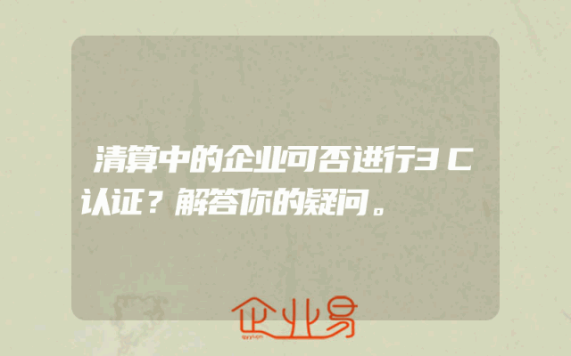 - 清算中的企业可否进行3C认证?解答你的疑问。
