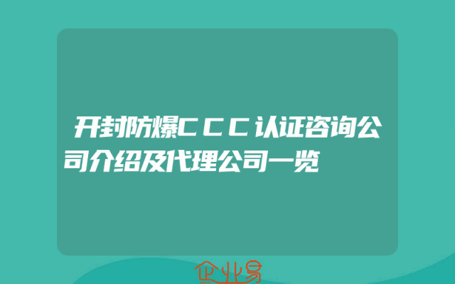 - 开封防爆CCC认证咨询公司介绍及代理公司一览