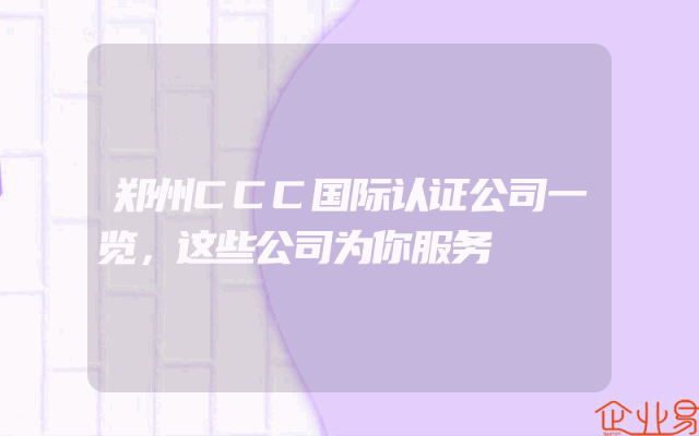 - 郑州CCC国际认证公司一览,这些公司为你服务