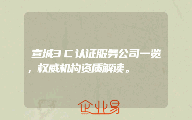 - 宣城3C认证服务公司一览,权威机构资质解读。