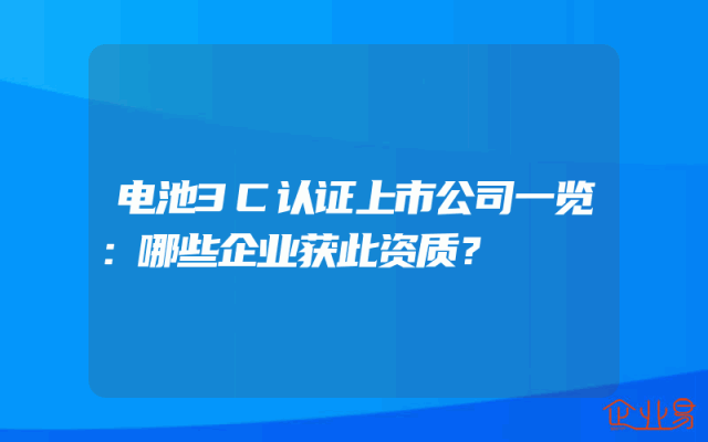 - 电池3C认证上市公司一览:哪些企业获此资质?