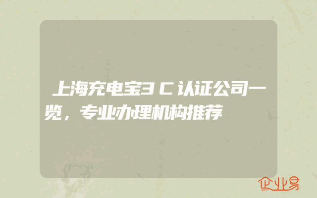 - 上海充电宝3C认证公司一览,专业办理机构推荐
