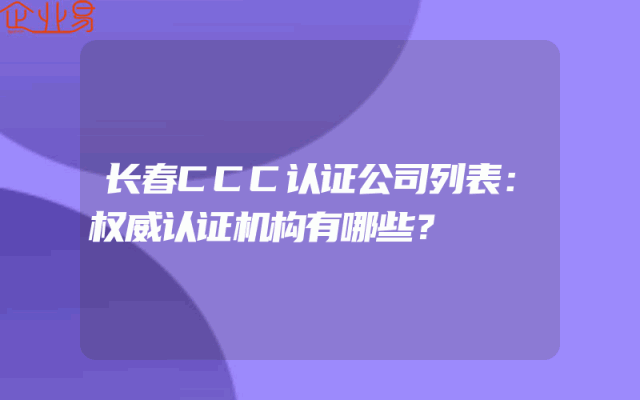 - 长春CCC认证公司列表:权威认证机构有哪些?