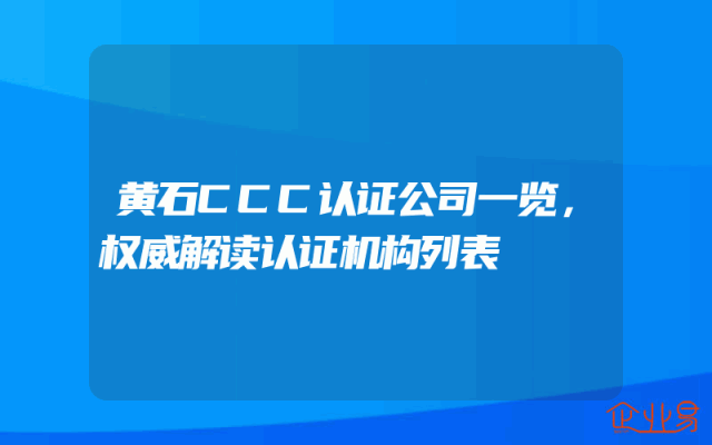 - 黄石CCC认证公司一览,权威解读认证机构列表