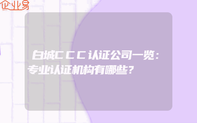 - 白城CCC认证公司一览:专业认证机构有哪些?