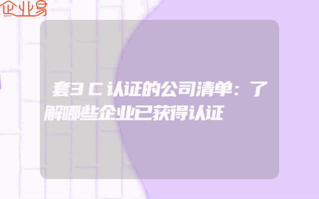 - 套3C认证的公司清单:了解哪些企业已获得认证