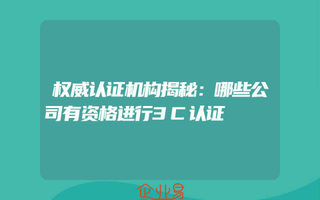 - 权威认证机构揭秘:哪些公司有资格进行3C认证