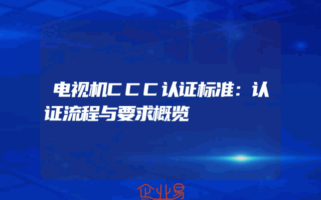 - 电视机CCC认证标准详解:认证流程与要求概览一、CCC认证简介CCC认证,即中国强制认证,是中华人民共和国针对涉及安全、卫生、环保等方面的重要工业产品实施的一种强制性认证制度。电视机作为重要的家电产品,在中国销售必须取得CCC认证。通过CC