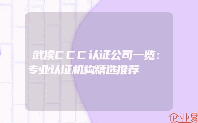 - 武侯CCC认证公司一览:专业认证机构精选推荐