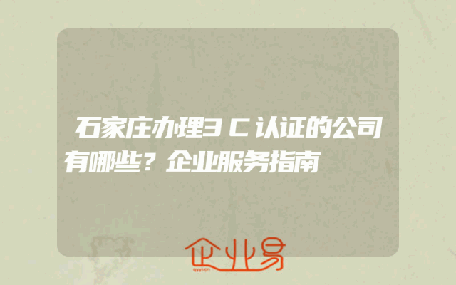 - 石家庄办理3C认证的公司有哪些?企业服务指南