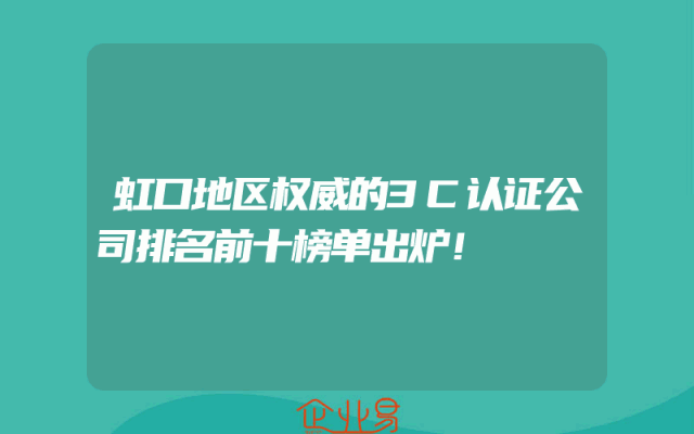 - 虹口地区权威的3C认证公司排名前十榜单出炉!