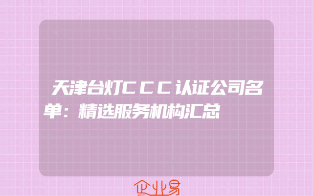 - 天津台灯CCC认证公司名单:精选服务机构汇总