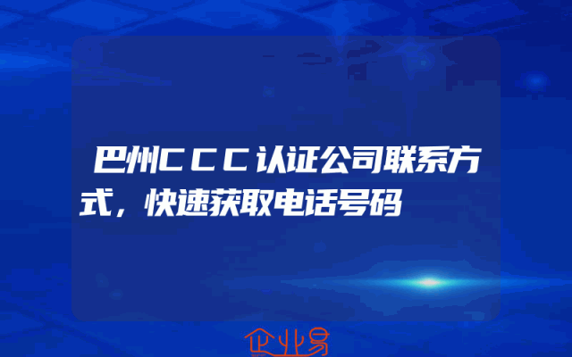 - 巴州CCC认证公司联系方式,快速获取电话号码