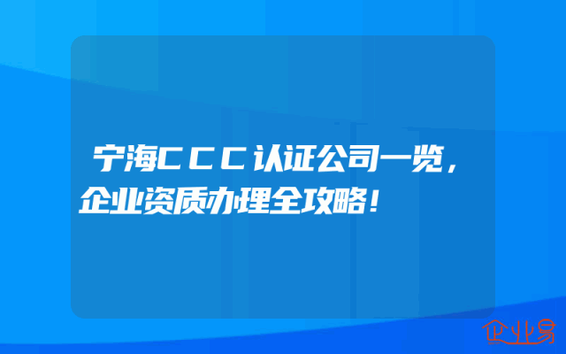 - 宁海CCC认证公司一览,企业资质办理全攻略!