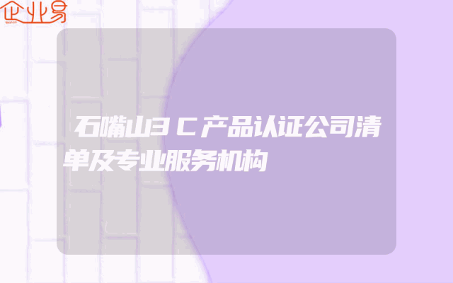 - 石嘴山3C产品认证公司清单及专业服务机构