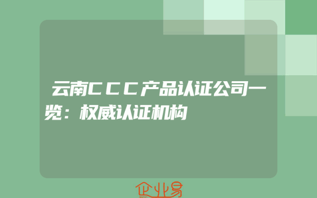 - 云南CCC产品认证公司一览:权威认证机构