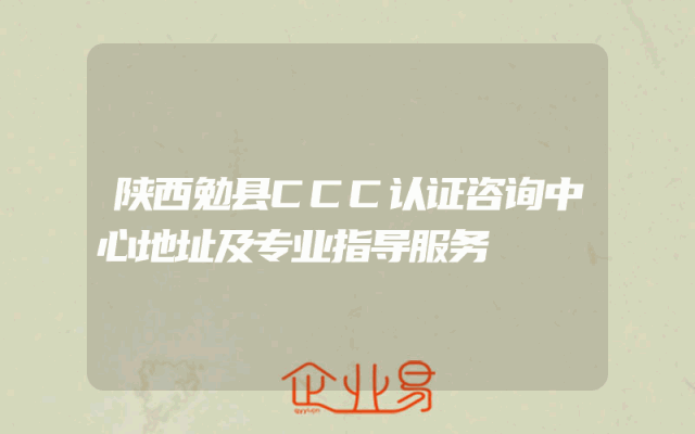 - 陕西勉县CCC认证咨询中心地址及专业指导服务