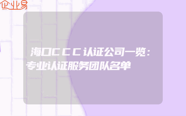 - 海口CCC认证公司一览:专业认证服务团队名单