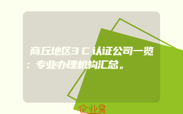 - 商丘地区3C认证公司一览:专业办理机构汇总。