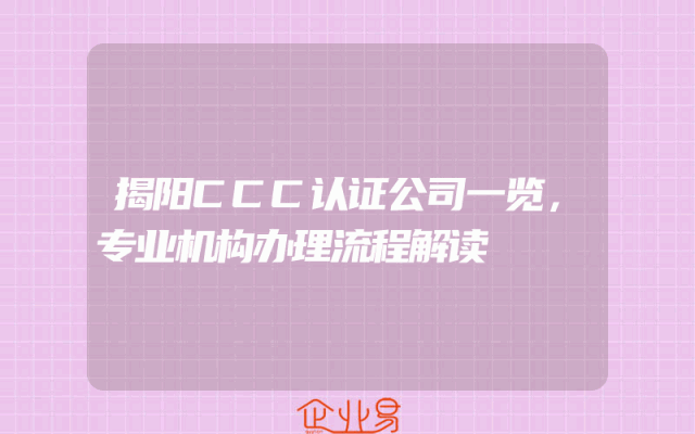 - 揭阳CCC认证公司一览,专业机构办理流程解读