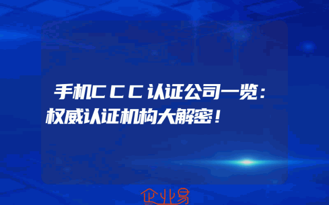 - 手机CCC认证公司一览:权威认证机构大解密!