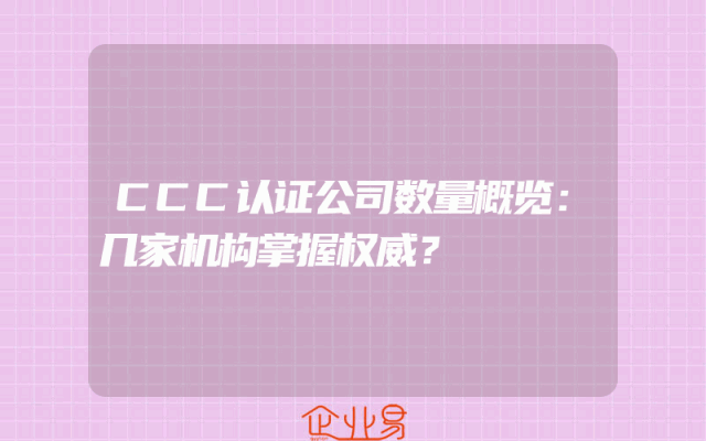 - CCC认证公司数量概览:几家机构掌握权威?一、CCC认证概述CCC认证,全称为“中国强制性产品认证”,是我国政府为保护消费者人身安全和国家安全,加强产品质量管理而实施的一种产品合格评定制度。随着市场需求的增长和监管政策的加强,CCC认证的重