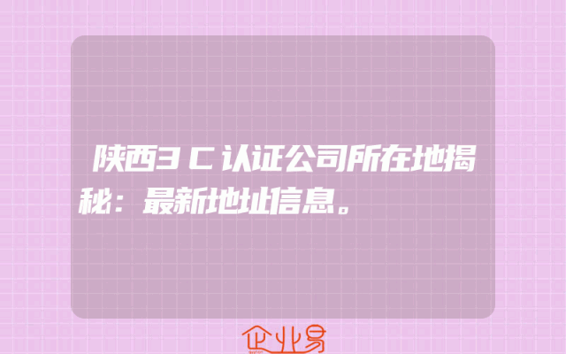 - 陕西3C认证公司所在地揭秘:最新地址信息。