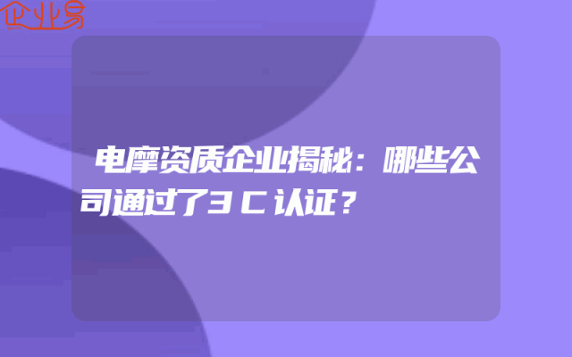 - 电摩资质企业揭秘:哪些公司通过了3C认证?