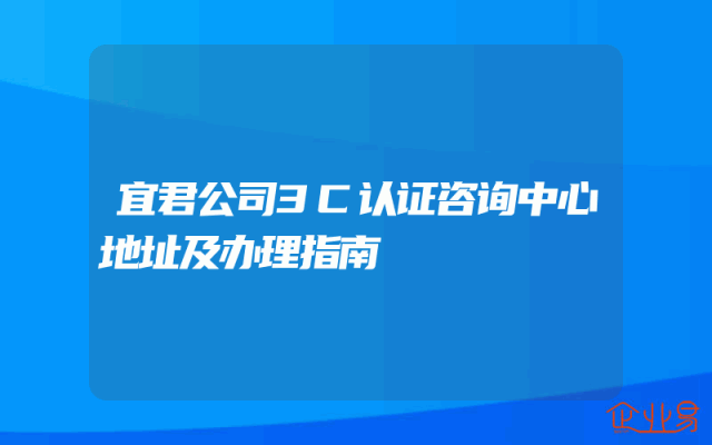 - 宜君公司3C认证咨询中心地址解析及办理指南一、宜君公司3C认证咨询中心地址解析宜君公司作为一个专业的企业服务机构,其3C认证咨询中心位于交通便利的地段,为众多企业提供了一站式的认证服务。该中心的具体地址是在XX市XX区XX路XX号,附近有多