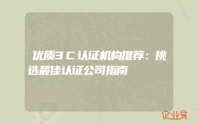 - 优质3C认证机构推荐:挑选最佳认证公司指南