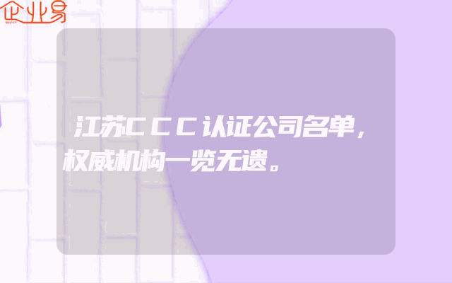 - 江苏CCC认证公司名单,权威机构一览无遗。