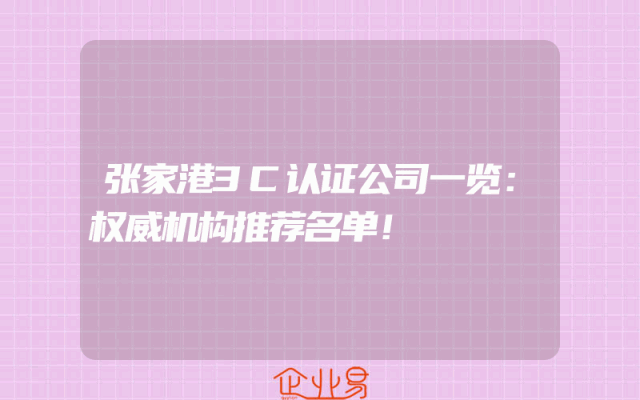 - 张家港3C认证公司一览:权威机构推荐名单!