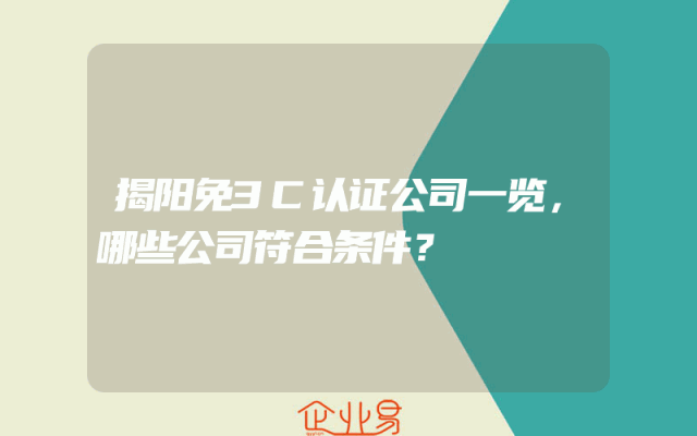- 揭阳免3C认证公司一览,哪些公司符合条件?
