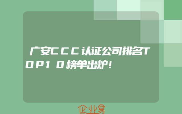- 广安CCC认证公司排名TOP10榜单出炉!