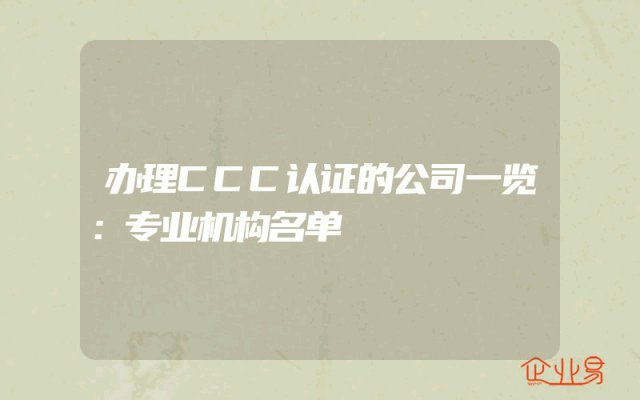 - 办理CCC认证的公司一览:专业机构解析名单一、CCC认证的重要性在中国市场,CCC(中国强制产品认证)认证对于企业和产品的重要性不言而喻。这是中国政府为保护消费者人身安全和国家安全,加强产品质量管理而实施的一种产品合格评定制度。对于希望在中