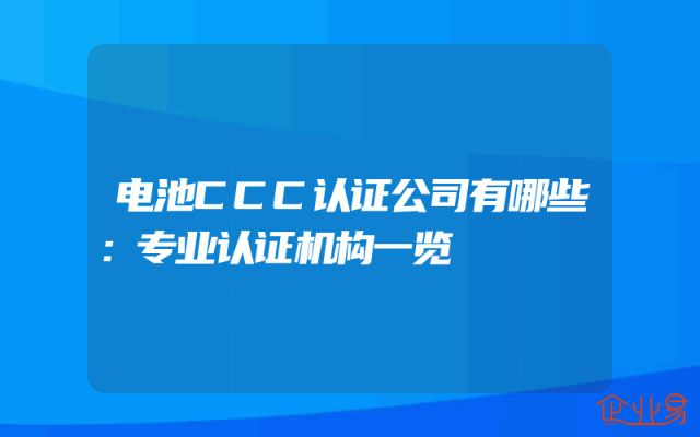 - 电池CCC认证公司有哪些:专业认证机构一览