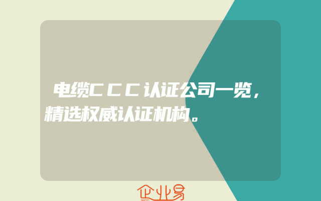 - 电缆CCC认证公司一览,精选权威认证机构。