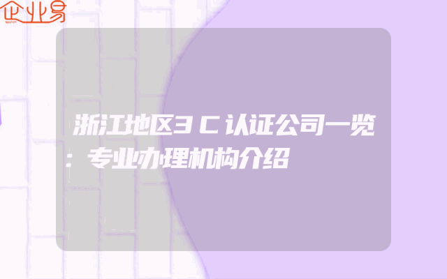 - 浙江地区3C认证公司一览:专业办理机构介绍