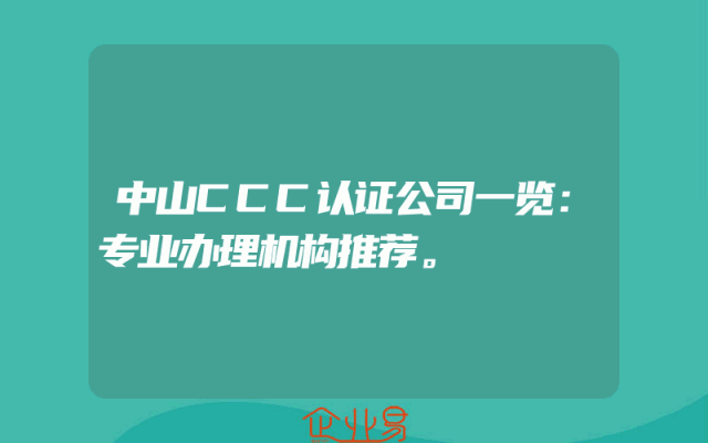- 中山CCC认证公司一览:专业办理机构推荐。