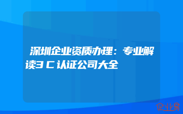 - 深圳企业资质办理:专业解读3C认证公司大全