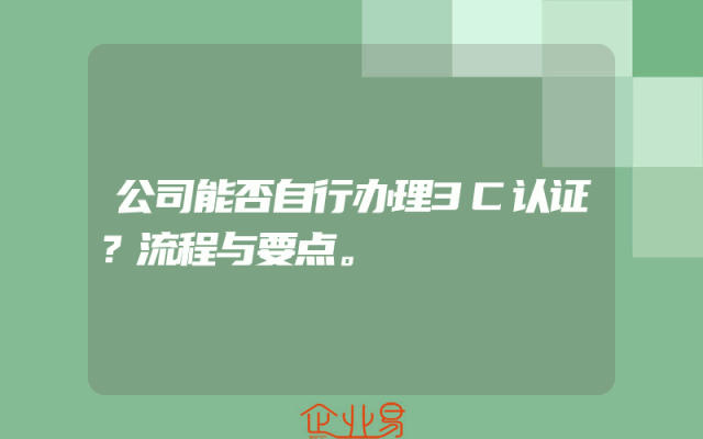 - 公司能否自行办理3C认证?解析流程与要点一、公司自行办理3C认证的可能性随着市场经济的发展,企业对产品质量的自我声明与认证变得越来越重要。3C认证作为中国强制性的产品认证,对于提升产品质量、保障消费者利益具有重要意义。企业是否有能力自行办理