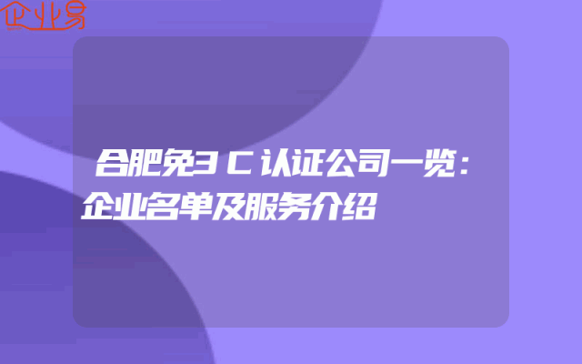 - 合肥免3C认证公司一览:企业名单及服务介绍