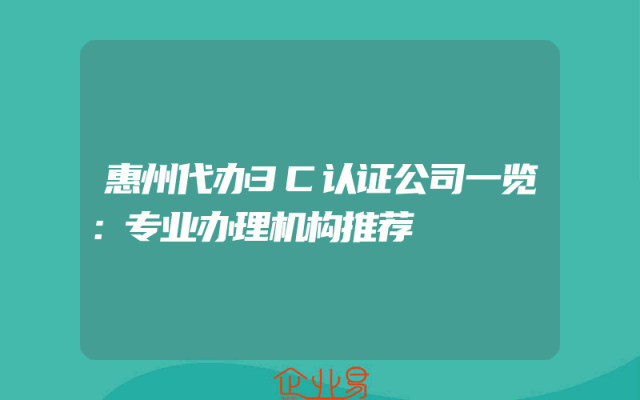 - 惠州代办3C认证公司一览:专业办理机构推荐