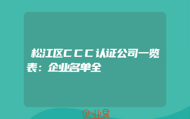 - 松江区CCC认证公司一览表:企业名单全解析一、引言随着市场的日益发展和规范化,越来越多的企业开始重视产品质量和安全性,而CCC认证作为确保产品安全的重要手段,受到了广大企业的关注。在松江区,有许多从事CCC认证的公司,为本地及周边企业提供优