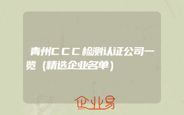 - 青州CCC检测认证公司一览(精选企业名单)引言随着产品质量和安全要求的不断提高,检测认证行业逐渐崭露头角。在青州地区,众多检测认证公司如雨后春笋般涌现,为消费者和企业提供了全方位的服务。本文将为您详细介绍青州CCC检测认证公司的相关情况,并