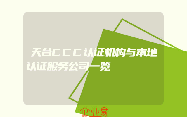 - 天台CCC认证机构与本地认证服务公司一览