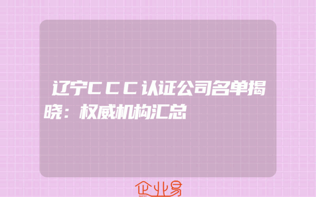 - 辽宁CCC认证公司名单揭晓:权威机构汇总