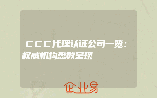 - CCC代理认证公司一览:权威机构悉数呈现