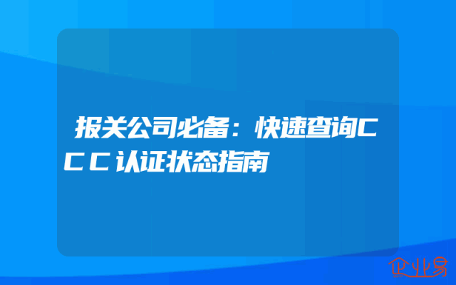 - 报关公司必备:快速查询CCC认证状态指南