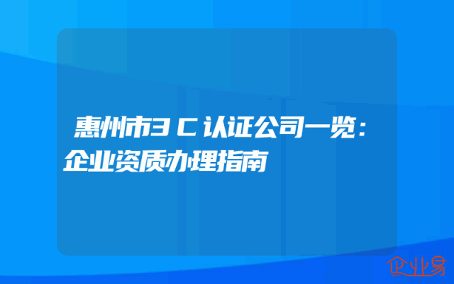 - 惠州市3C认证公司一览:企业资质办理指南